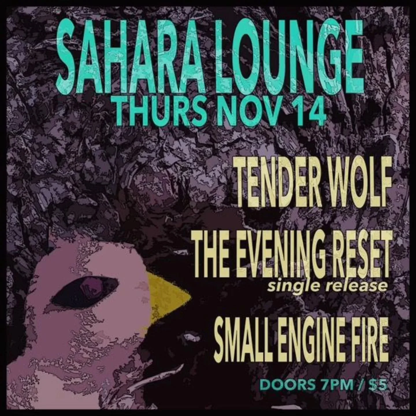 Their “brilliantly bleak folk-rock originals,” are punctuated by haunting melodies, introspective lyrics, and a touch of ethereal elegance provided by Courtney Waldron Daehne's (Milktoast Millie & the Scabby Knees) cello, the band creates captivating sadcore music that resonates deeply. Backing vocalist and bassist Chris Nine (Stella & the Very Messed, Schatzi) adds rich harmonies, intertwining with J. Summar's vocals to create a hauntingly beautiful synergy. Phil McJunkins' (Moving Panoramas, Sanco Loop) dynamic drumming completes the lineup, elevating Tender Wolf's moody compositions with a vital pulse. Together, their “orchestral-grunge lyrics” and “instrumental interplay,” invite listeners on an introspective musical journey, exploring the complexities of the human heart.